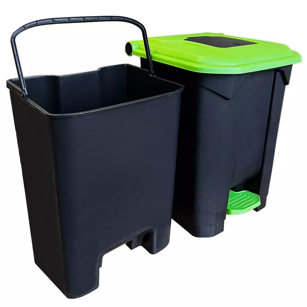 Бак для сміття з педаллю Planet 50 л чорний - зелений з внутрішнім відром.