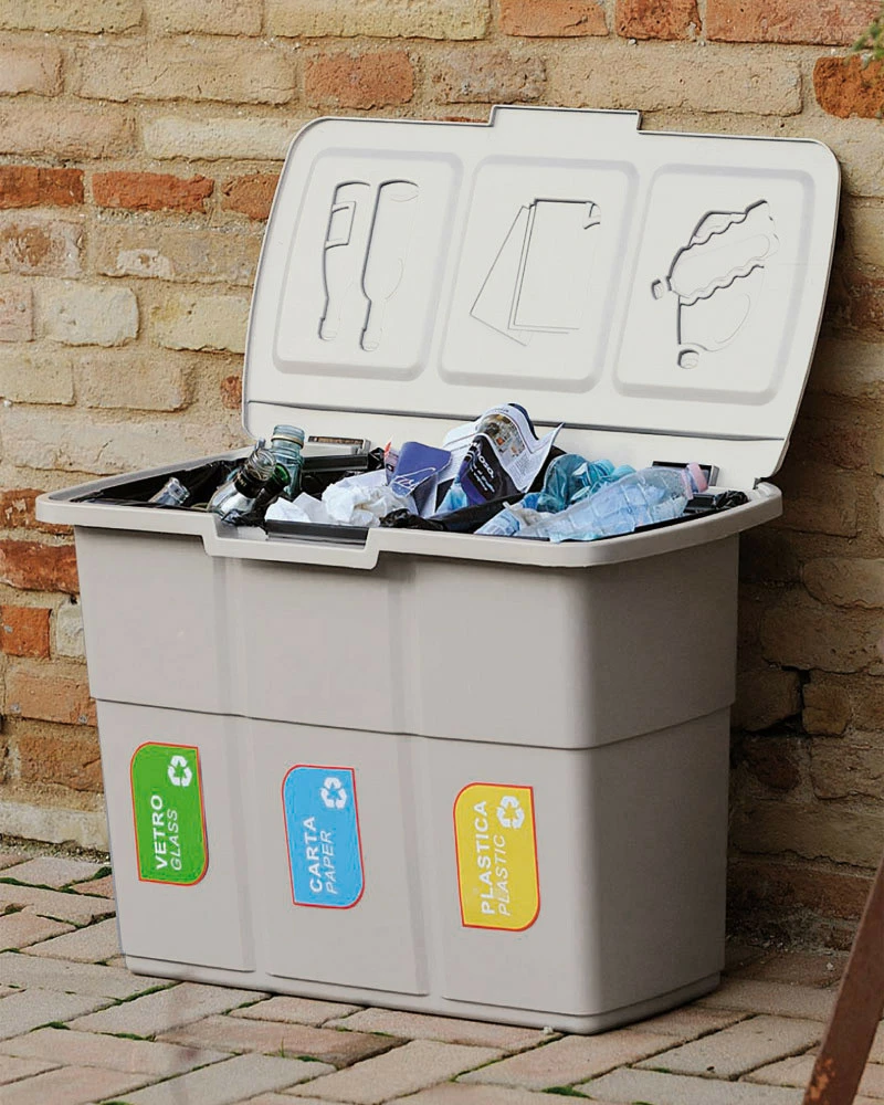 Бак для сортування сміття Ecopat можна використовувати на відритих садових ділянках, так як виріб виготовлений з стійкого до низьких температур пластика. На сьогоднішній день сортування сміття актуальна в кожному будинку. Бак для сміття розділений на три відділення, кожне з яких обсягом у 25 літрів. На внутрішній стороні кришки вже зазначено в яке з відділень складати папір, скло і пластик. Тому навіть дітям буде цікаво і зрозуміло сортувати сміття за вказаними відділеннями.