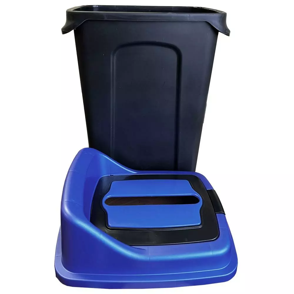 З баком для сортування сміття Re-Сycler поділ відходів буде легким і комфортним. Кришка бака повністю знімна із завантажувальним отвором під відповідне призначення, також на кришці є клавіша для її повного відкриття. По обидва боки бака є ручки для перенесення. Зовнішні стінки бака матові - при вологому прибиранні не видно розводів, внутрішня поверхня гладка для легкого догляду. Бак можна використовувати на вулиці та в приміщенні. Матеріал виробу поліпропілен, стійкий до дії вологи, УФ-випромінювання. У кожному баку є наклейка з позначками відходів (наклеюється самостійно). Баки серії Re - Сycler випускаються в чотирьох кольорах кришки під різне призначення: синя кришка - папір; жовта – пластик; зелена – скло; чорна – органіка.
