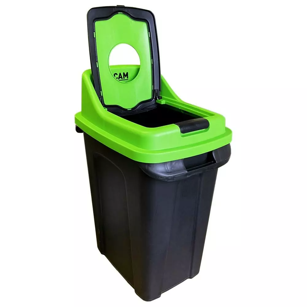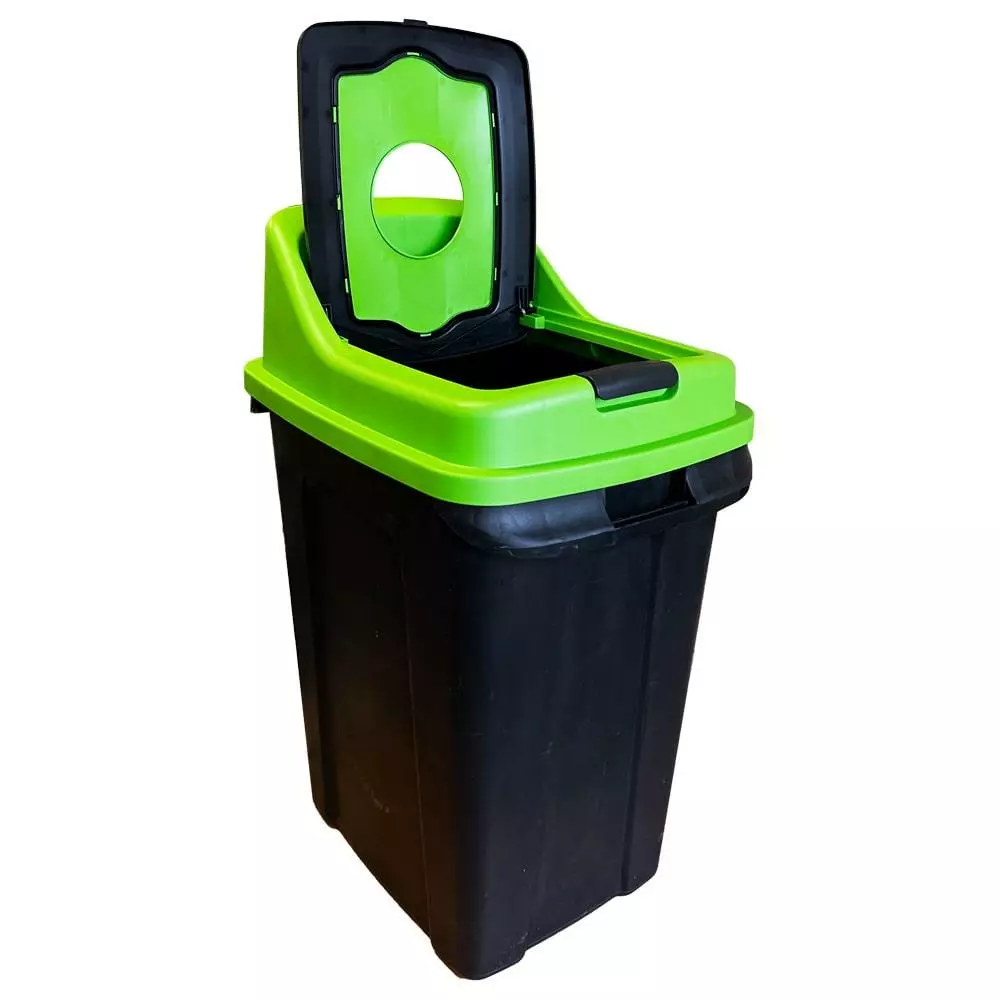 З баком для сортування сміття Re-Сycler поділ відходів буде легким і комфортним. Кришка бака повністю знімна із завантажувальним отвором під відповідне призначення, також на кришці є клавіша для її повного відкриття. По обидва боки бака є ручки для перенесення. Зовнішні стінки бака матові - при вологому прибиранні не видно розводів, внутрішня поверхня гладка для легкого догляду. Бак можна використовувати на вулиці та в приміщенні. Матеріал виробу поліпропілен, стійкий до дії вологи, УФ-випромінювання. У кожному баку є наклейка з позначками відходів (наклеюється самостійно). Баки серії Re - Сycler випускаються в чотирьох кольорах кришки під різне призначення: синя кришка - папір; жовта – пластик; зелена – скло; чорна – органіка.