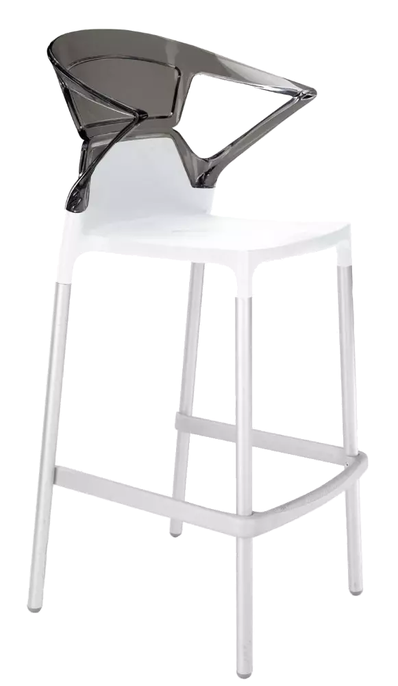 спинка з полікарбонату. Основа крісла - алюмінієві ніжки. Сидіння