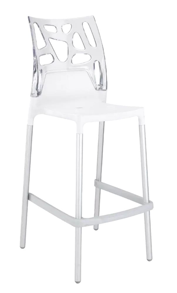 Барний стілець Papatya Ego-Rock біле сидіння, верх прозоро-чистий