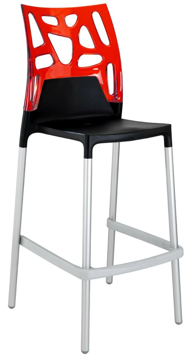 Барний стілець Papatya Ego-Rock чорне сидіння, верх прозоро-червоний