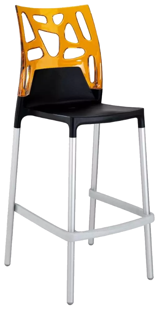Барний стілець Papatya Ego-Rock чорне сидіння, верх прозоро-помаранчевий