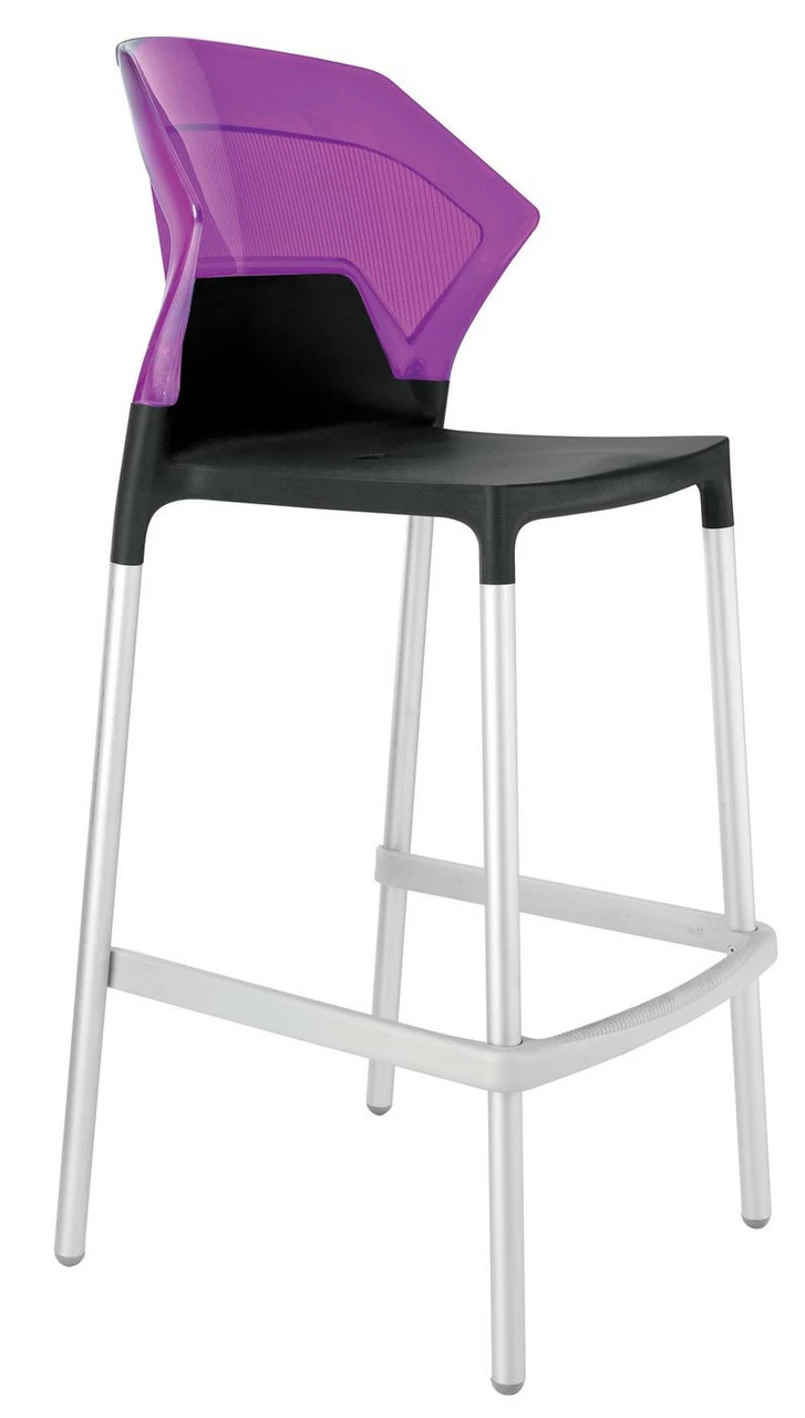 Барний стілець Papatya Ego-S чорне сидіння, верх прозоро-пурпурний