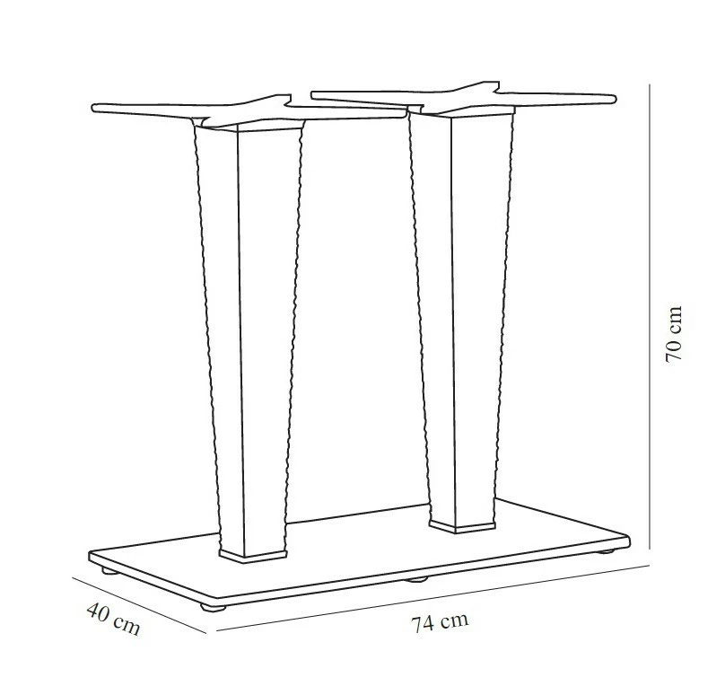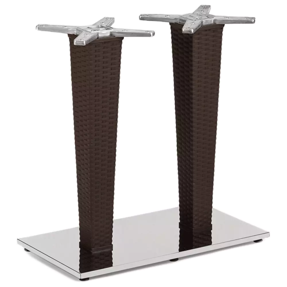 База столу з подвійними ніжками під ротанг з алюмінієвої опорою, максимально стійка і довговічна. Більш того, не схильна до механічних пошкоджень, що говорить про збереження привабливого товарного вигляду на довгі роки. Плюси даної моделі в її експлуатаційних якостях і в оригінальному, естетичному дизайні. Підходить для комбінування зі стільницями Antares 70×70, 80×80, 80×120 и 90×150. Основа представлена в шести різних кольорах: чорний, дерево, венге, кремовий, кава і слонова кістка.