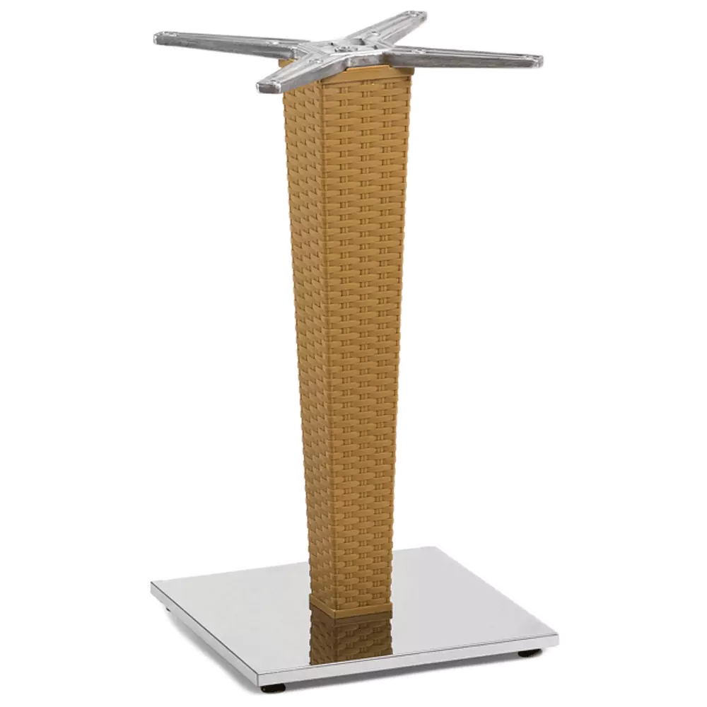 База столу під ротанг з алюмінієвої опорою, максимально стійка і довговічна. Більш того, не схильна до механічних пошкоджень, що говорить про збереження привабливого товарного вигляду на довгі роки. Плюси даної моделі в її експлуатаційних якостях і в оригінальному, естетичному дизайні. Підходить для комбінування зі стільницями Antares 70×70, 80×80, 80×120 и 90×150. Основа представлена в шести різних кольорах: чорний, дерево, венге, кремовий, кава і слонова кістка.