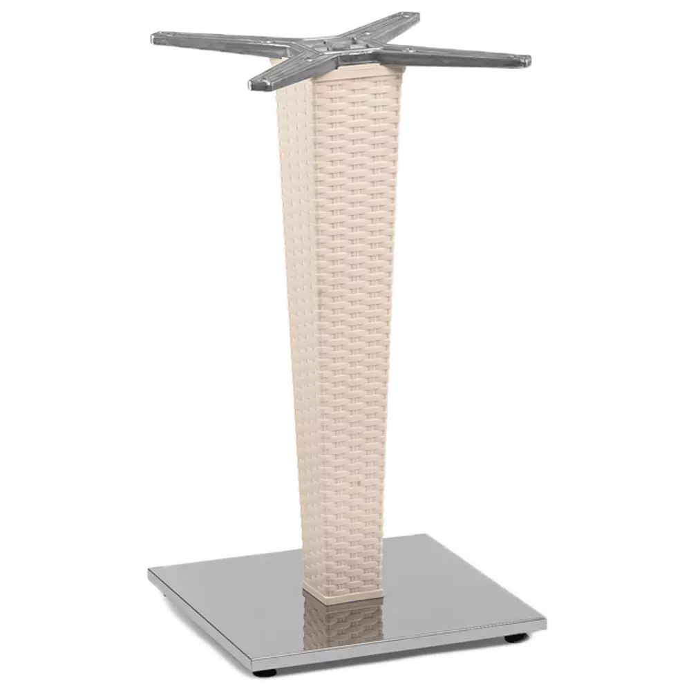 База столу під ротанг з алюмінієвої опорою, максимально стійка і довговічна. Більш того, не схильна до механічних пошкоджень, що говорить про збереження привабливого товарного вигляду на довгі роки. Плюси даної моделі в її експлуатаційних якостях і в оригінальному, естетичному дизайні. Підходить для комбінування зі стільницями Antares 70×70, 80×80, 80×120 и 90×150. Основа представлена в шести різних кольорах: чорний, дерево, венге, кремовий, кава і слонова кістка.