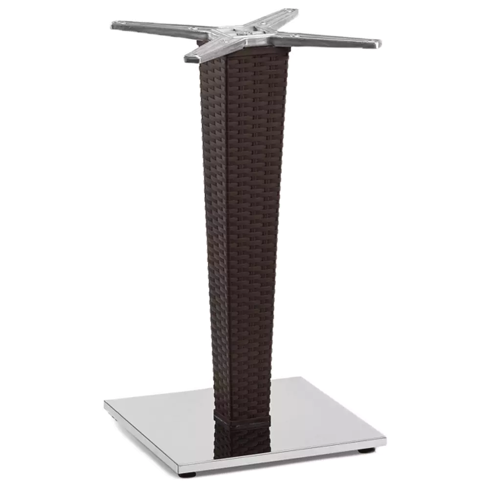 База столу під ротанг з алюмінієвої опорою, максимально стійка і довговічна. Більш того, не схильна до механічних пошкоджень, що говорить про збереження привабливого товарного вигляду на довгі роки. Плюси даної моделі в її експлуатаційних якостях і в оригінальному, естетичному дизайні. Підходить для комбінування зі стільницями Antares 70×70, 80×80, 80×120 и 90×150. Основа представлена в шести різних кольорах: чорний, дерево, венге, кремовий, кава і слонова кістка.