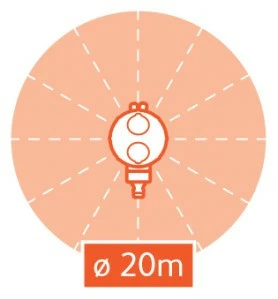 Максимальна зона покриття - 314 кв.м. (Максимальний діаметр 20 метрів), забезпечує 100% рівномірний полив навіть при мінімальному тиску.