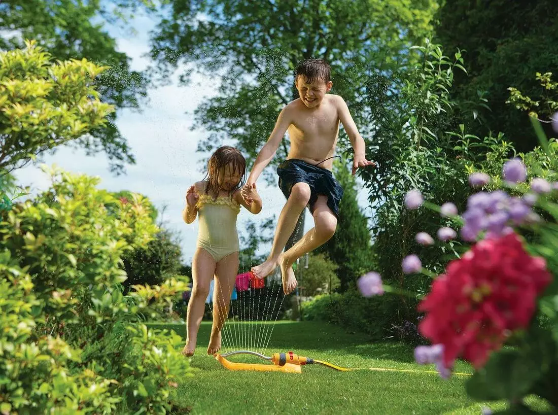 - Дощувач HoZelock стійко лежить на галявині або бордюрі, завдяки своїй конструкції.