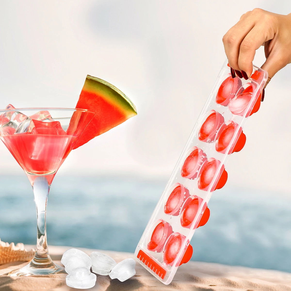 Форма для льоду, має по 10 великих осередків для заморозки. Основа форми пластикова, а осередки силіконові - витягувати лід легко і безпечно. Форма для льоду виготовлена з якісних матеріалів, придатних для контакту з харчовими продуктами.