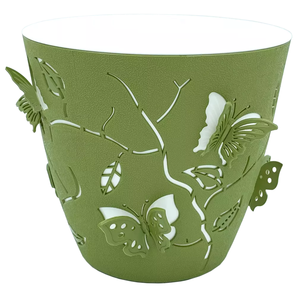 Порхающие бабочки на подоконнике круглый год, с цветочными горшками 3D. Интересный, оригинальный дизайн, добавит нотку легкости и нежности в интерьер. Высадка растений и полив, производится во внутренний горшок, обеспечивая чистоту и удобство, без протекания воды на подоконник. Горшок изготовлен из пластика с матовой, текстурированной поверхностью, характеризируется ударостойкостью и эластичностью, стойкий к выгоранию цвета под воздействием солнца. Для создания 3D эффекта, необходимо с внутренней стороны горшка, слегка нажать на крылышки бабочки. При необхідності, крильця можна повернути у вихідне положення.
