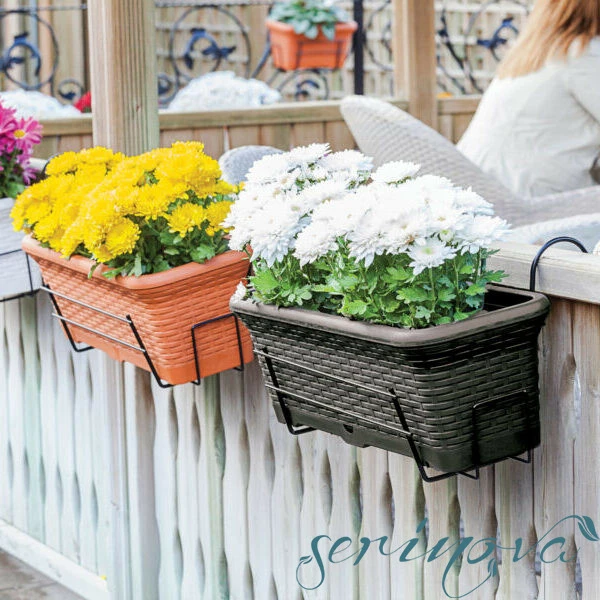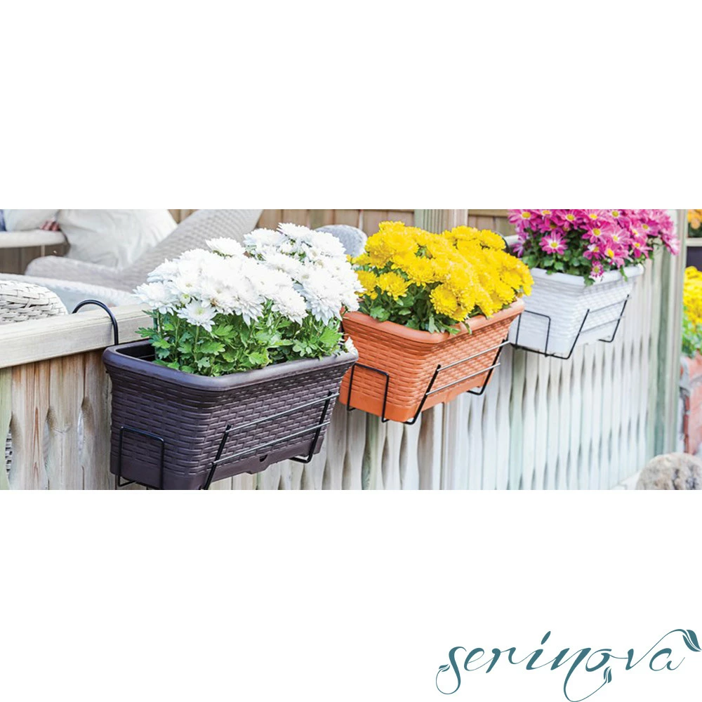 Балконний горщик для квітів Wire, з цікавою плетеною текстурою під ротанг, підійде для оформлення присадибної території вашого будинку, дачі або кафе. Горщик з дренажними отворами для аерації кореневої системи і відведення зайвої вологи. До горщика щільно приєднується піддон. Матеріал виробу поліпропілен - найбільш безпечний з усіх видів пластику, не має запаху, стійкий до УФ-випромінювання, вигоряння кольору під впливом сонця. Може використовуватися всередині приміщення і на вулиці. Для підвісу балконних горщиків Wire, необхідно два металевих кріплення (арт.11327).
