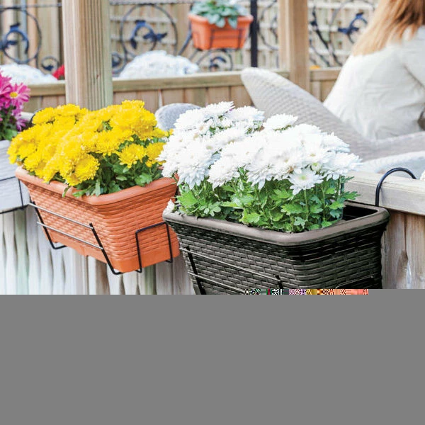 Балконний горщик для квітів Wire, з цікавою плетеною текстурою під ротанг, підійде для оформлення присадибної території вашого будинку, дачі або кафе. Горщик з дренажними отворами для аерації кореневої системи і відведення зайвої вологи. До горщика щільно приєднується піддон. Матеріал виробу поліпропілен - найбільш безпечний з усіх видів пластику, не має запаху, стійкий до УФ-випромінювання, вигоряння кольору під впливом сонця. Може використовуватися всередині приміщення і на вулиці. Для підвісу балконних горщиків Wire, необхідно два металевих кріплення (арт.11327).