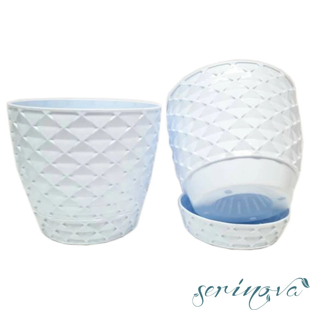Горщик для квітів Kapadokya, має цікаву рельєфну фактуру. Пастельні кольори і яскравий глянець горщиків, гармонійно поєднуються між собою в одній композиції, прекрасно доповнюючи дитячу кімнату або спальню. До горщика з дренажними отворами, щільно прилягає підставка на засувках, для надлишків води і відведення зайвої вологи, коріння рослини не застоюється у воді і забезпечене оптимальною циркуляцією повітря. Виготовлений з поліпропілену - найбільш безпечний з усіх видів пластику, матеріал гнучкий, не має запаху, стійкий до УФ-випромінювання, вигоряння кольору під впливом сонця. Може використовуватися всередині приміщення і на вулиці.
