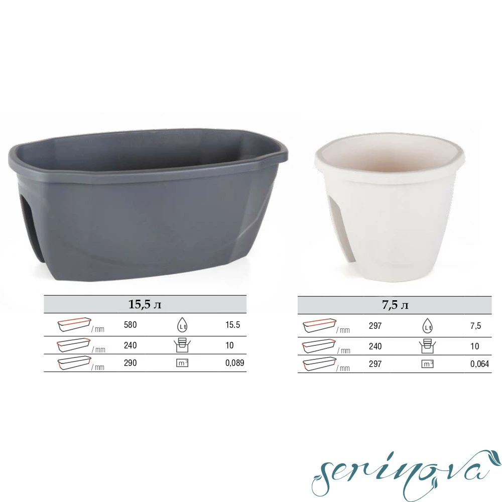 Горщик представлений в декількох об'ємах: 7,5 л; 15,5 л.