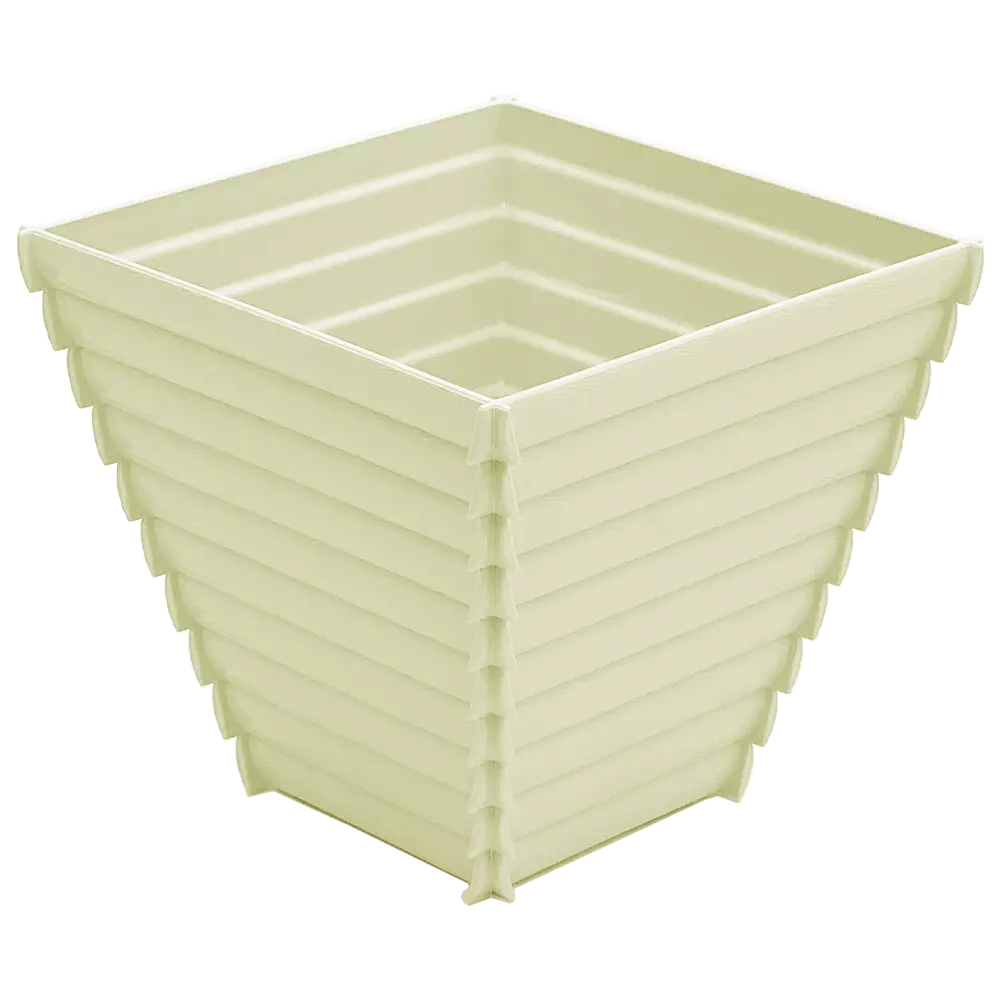 Квітковий горщик фактурою поверхні і дизайном емітує натуральне дерево, він підкреслить природний характер навколишнього середовища і індивідуальність рослини. Є дренажна вставка, яка відводить зайву воду і сприяє аерації коренів. Коріння рослини не застоюються в воді і забезпечені циркуляцією повітря. Вода не протікає при поливі, немає наскрізних отворів, забезпечуючи чистоту і зручність в експлуатації. Виготовлений з поліпропілену - найбільш безпечний з усіх видів пластику, матеріал гнучкий, не має запаху, стійкий до вигорання кольору під впливом сонця.