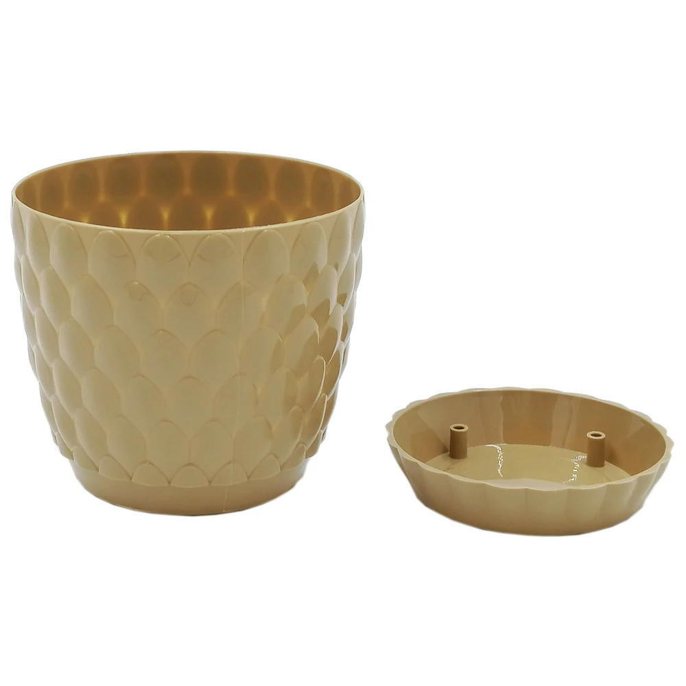 Горщик для квітів PINECON, має цікаву рельєфну фактуру. Пастельні кольори і яскравий глянець горщиків, гармонійно поєднуються між собою в одній композиції, прекрасно доповнюючи дитячу кімнату або спальню. До горщика з дренажними отворами, щільно прилягає підставка на засувках, що дозволяє лишкам води стікати, завдяки чому коріння рослин не псується. Виготовлений з поліпропілену, найбільш безпечний з усіх видів пластику - матеріал гнучкий, не має запаху, стійкий до вигорання кольору під впливом сонця.