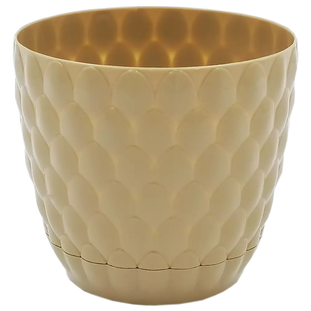 Горщик для квітів PINECON, має цікаву рельєфну фактуру. Пастельні кольори і яскравий глянець горщиків, гармонійно поєднуються між собою в одній композиції, прекрасно доповнюючи дитячу кімнату або спальню. До горщика з дренажними отворами, щільно прилягає підставка на засувках, що дозволяє лишкам води стікати, завдяки чому коріння рослин не псується. Виготовлений з поліпропілену, найбільш безпечний з усіх видів пластику - матеріал гнучкий, не має запаху, стійкий до вигорання кольору під впливом сонця.