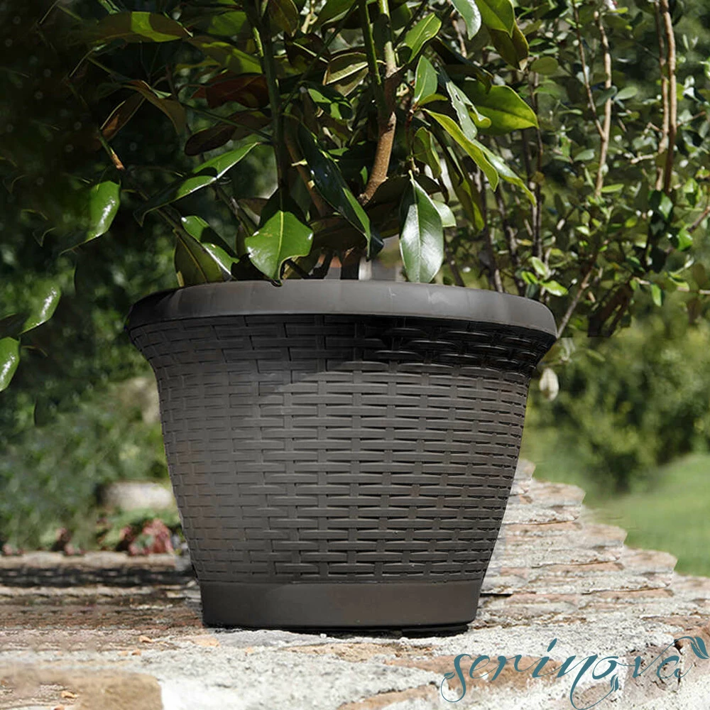 Горщик для квітів Wire, з цікавою плетеною текстурою під ротанг, підійде для оформлення саду та присадибної території. Горщик з дренажними отворами для аерації кореневої системи і відведення зайвої вологи. До горщика щільно приєднується піддон. Матеріал виробу поліпропілен - найбільш безпечний з усіх видів пластику , не має запаху, стійкий до УФ-випромінювання, вигоряння кольору під впливом сонця. Може використовуватися всередині приміщення і на вулиці.