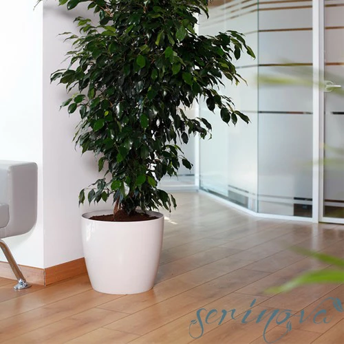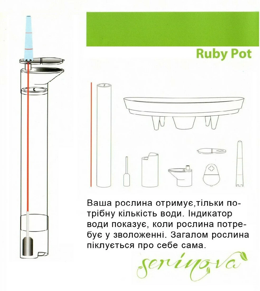 Елегантний і естетичний дизайн горщика для квітів з автоматичним поливом Ruby, прикрасить сучасний інтер'єр будинку, офісу чи ресторану. У резервуар заливається вода. Через отвори в резервуарі вода надходить до корінів (нижній полив). Субстрат насичується вологою, поки вся вода в резервуарі не закінчиться. Виготовлений з поліпропілену - найбільш безпечний з усіх видів пластику, матеріал не має запаху, стійкий до вигорання кольору під впливом сонця. Горщик представлений в декількох об'ємах: 33 л; 66 л.
