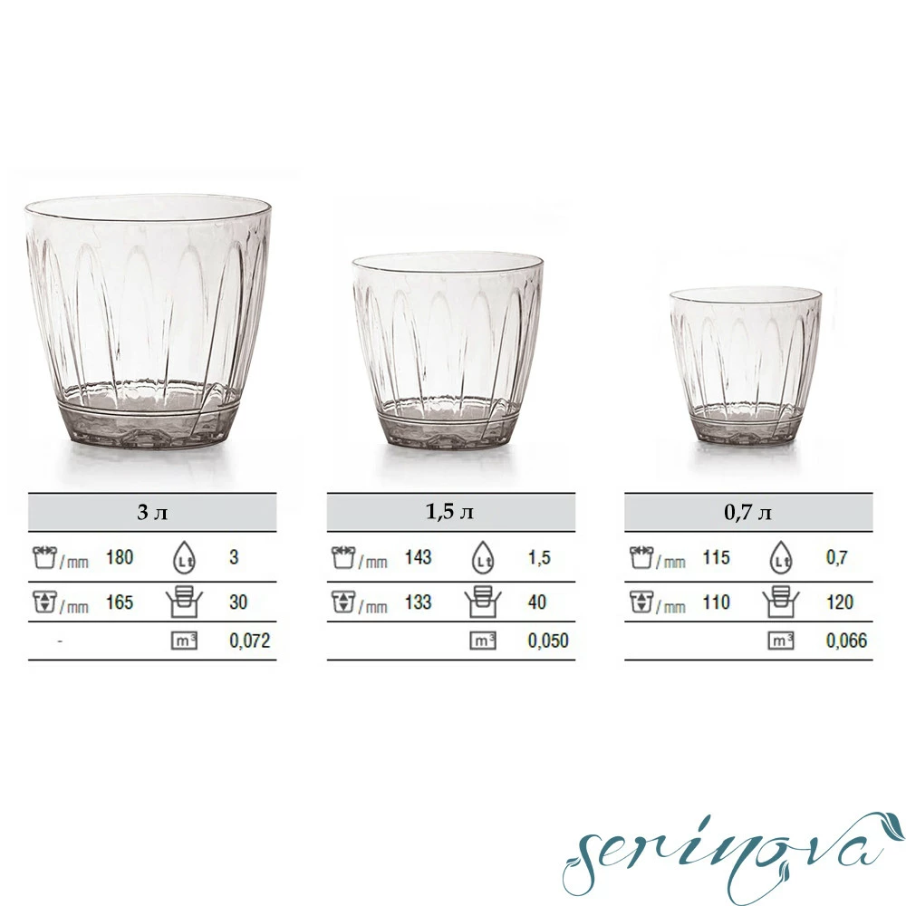 Горщик представлений в декількох об'ємах: 0,7 л; 1,5 л; 3 л.