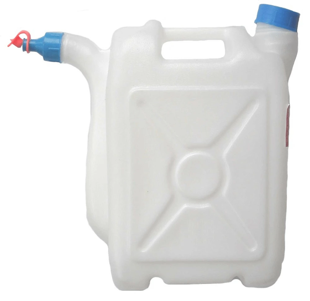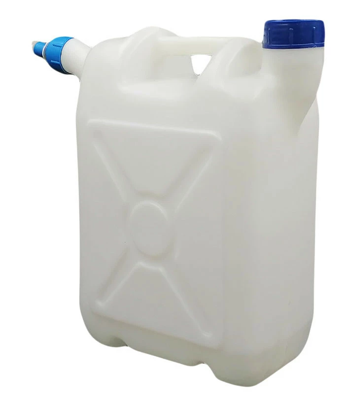 Каністра з носиком для зберігання і транспортування харчових і нехарчових рідин. Кришка на різьбі, оснащена ущільнювальним вкладишем, що запобігає протіканню. За допомогою носика зручно розливати рідину в тару невеликих розмірів. Пластикова каністра стійка до хімічних речовин, механічних впливів, легка, універсальна і довговічна.