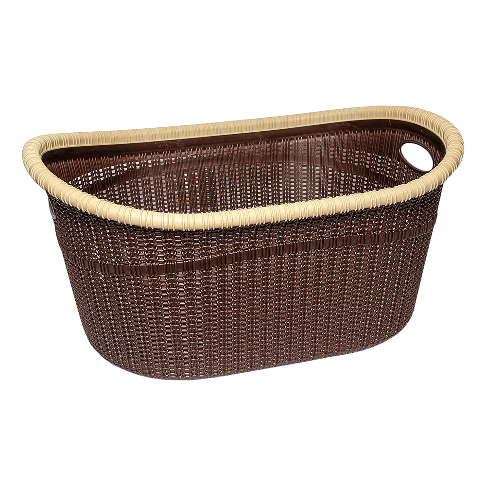 Кошик для білизни міцний і місткий, плетіння під ротанг і пастельний колір відмінно доповнять інтер'єр ванної кімнати. Зручні ручки для перенесення і гладкі внутрішні стінки забезпечать комфорт і зручність у використанні. Виріб виготовлено з високоякісного пластику і гарантовано прослужить довгі роки.