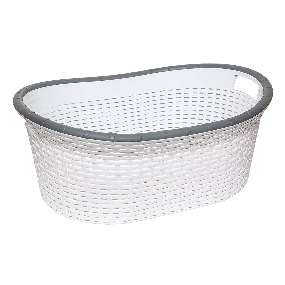 Кошик для білизни міцний і місткий, плетіння під ротанг і пастельний колір відмінно доповнять інтер'єр ванної кімнати. Зручні ручки для перенесення і гладкі внутрішні стінки забезпечать комфорт і зручність у використанні. Виріб виготовлено з високоякісного пластику і гарантовано прослужить довгі роки.