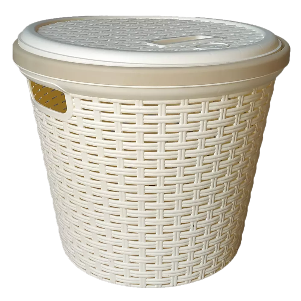 Кошик для білизни зручний і комфортний у використанні. Плетіння під ротанг дозволяє циркулювати повітрю, а кришка закриє вміст від очей. Кошик компактний, що дає можливість розмістити його у вузькому просторі. Виріб виготовлено з високоякісного пластику і гарантовано прослужить довгі роки.