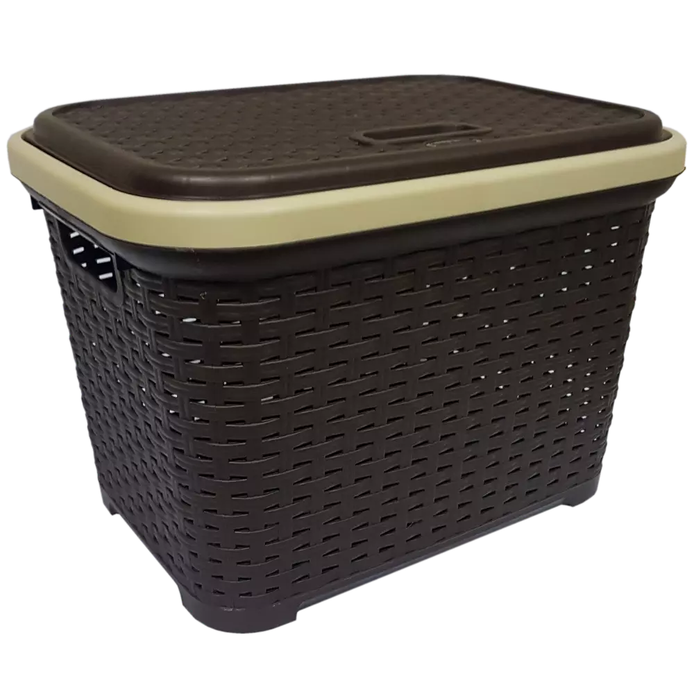 Кошик для білизни зручний і комфортний у використанні. Плетіння під ротанг дозволяє циркулювати повітрю, а кришка закриє вміст від очей. Кошик компактний, що дає можливість розмістити його у вузькому просторі. Виріб виготовлено з високоякісного пластику і гарантовано прослужить довгі роки.
