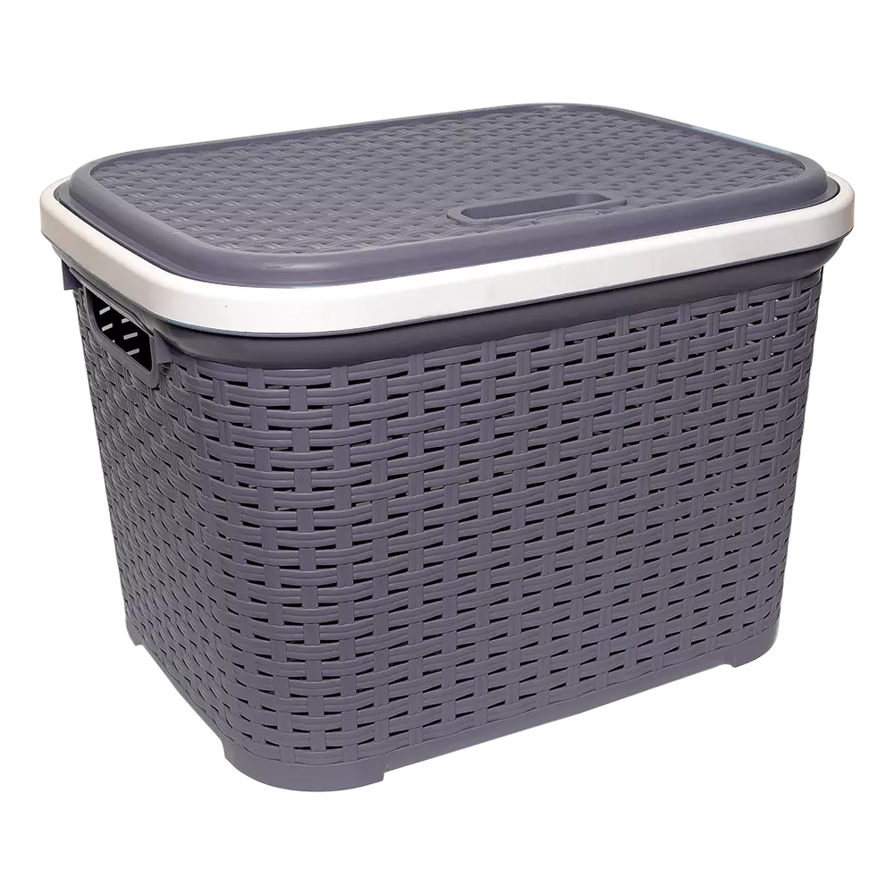 Кошик для білизни зручний і комфортний у використанні. Плетіння під ротанг дозволяє циркулювати повітрю, а кришка закриє вміст від очей. Кошик компактний, що дає можливість розмістити його у вузькому просторі. Виріб виготовлено з високоякісного пластику і гарантовано прослужить довгі роки.