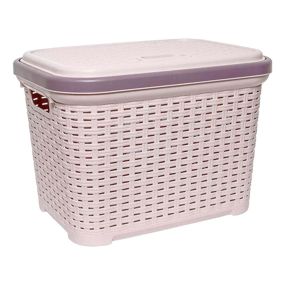 Кошик для білизни під ротанг з кришкою 35 л пудровий