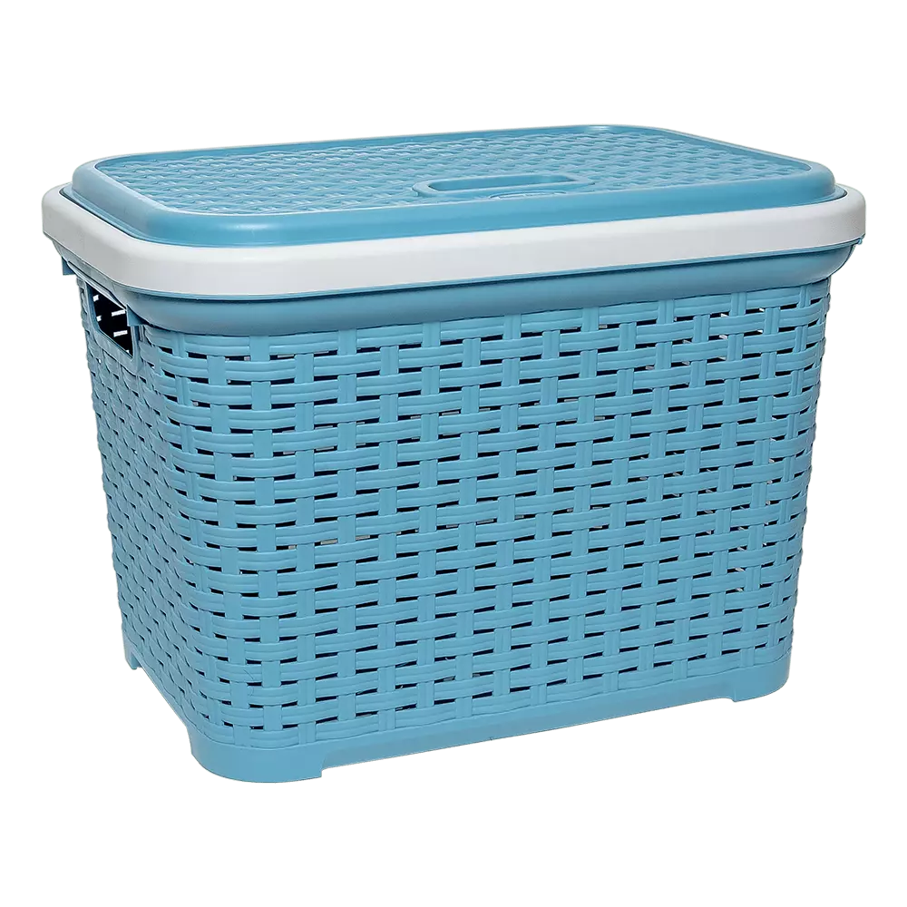 Кошик для білизни під ротанг з кришкою 35 л синій