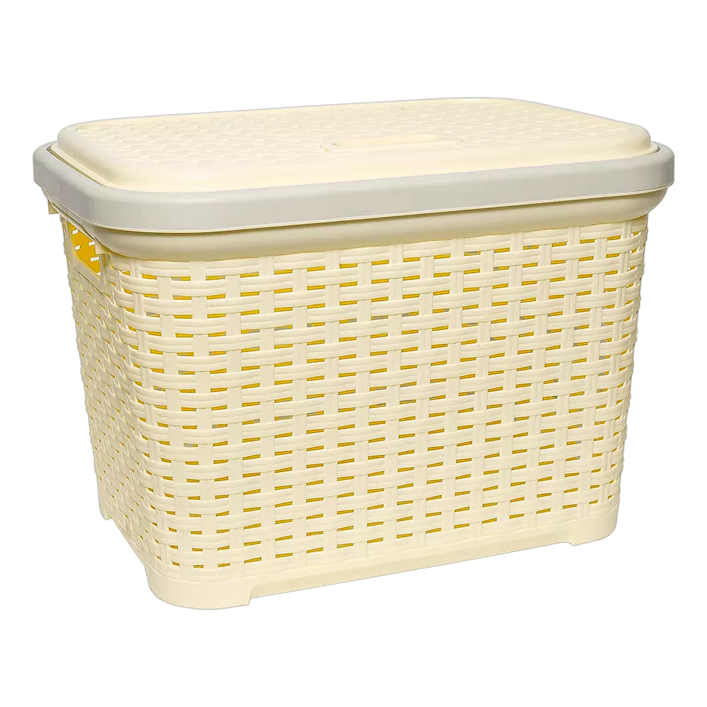 Кошик для білизни під ротанг з кришкою 35 л жовтий