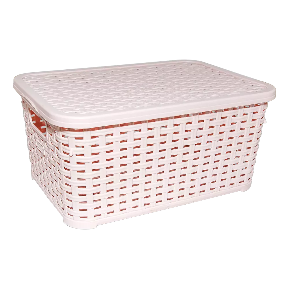 Кошик під ротанг з кришкою, прекрасно підійде для зберігання дрібних речей і продуктів, а також послужить відмінним аксесуаром для оформлення інтер'єру. Матеріал виробу (поліпропілен) безпечний при контакті з харчовими продуктами. Допускається використовувати в діапазоні температур від -25 до +95 ° C. Можна мити в посудомийній машині.