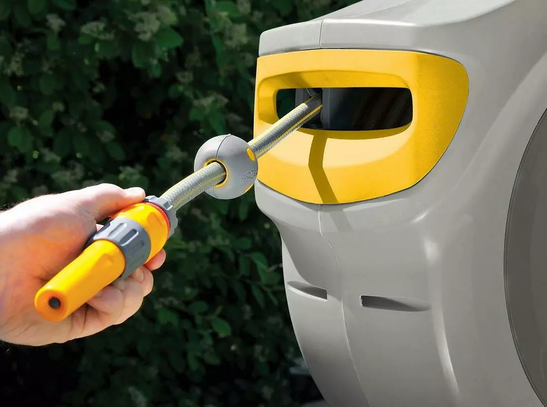 - Котушка акуратно зберігає і захищає шланг в міцному, стійкому до УФ-випромінювання поліпропіленовому футлярі.