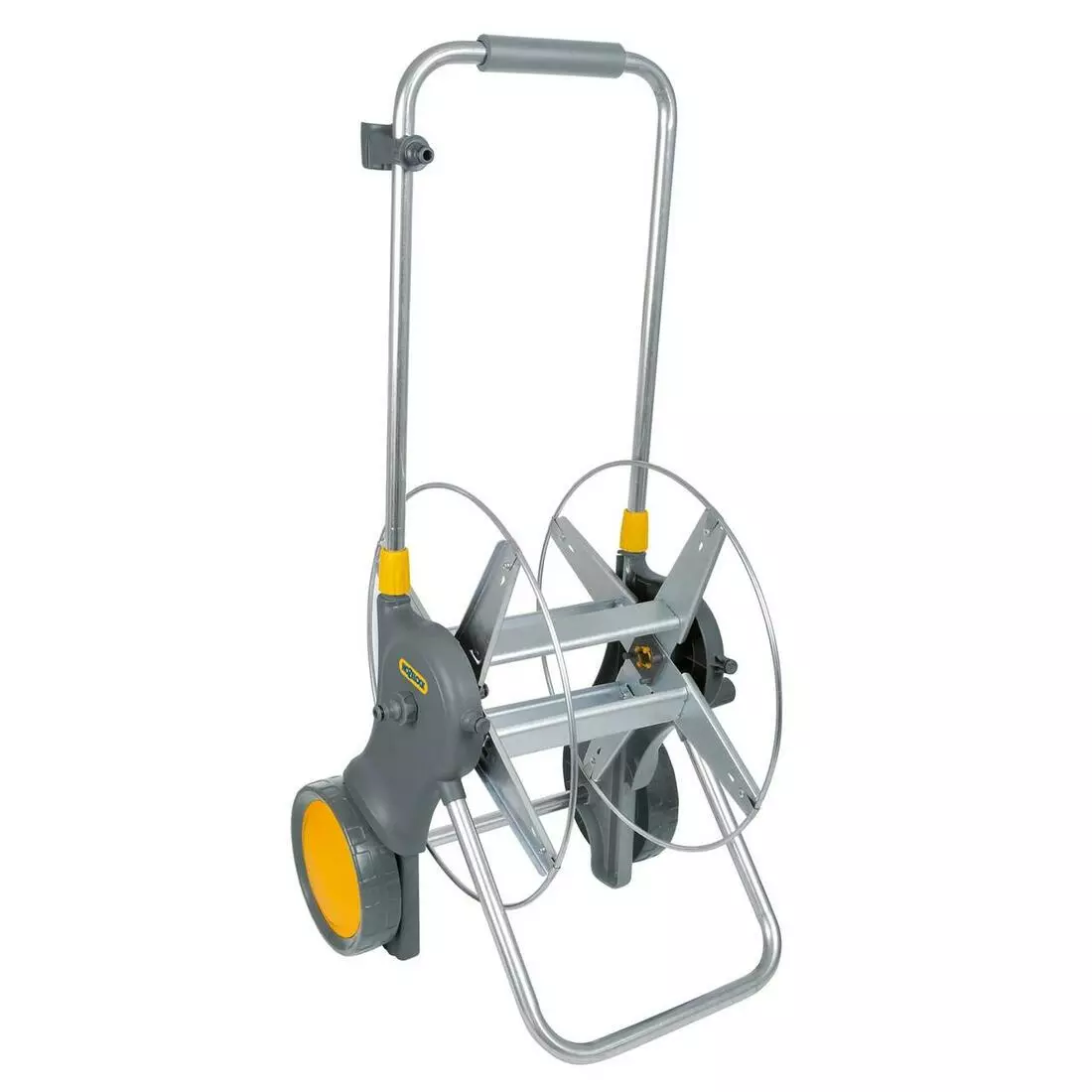 Завдяки збільшеній висоті котушки, яка досягає 750 мм, великим рифленим колесам та сталевій осі, котушку дуже легко переміщати дільницею. Спеціальна форма опорної рами та низький центр тяжіння забезпечують максимальну стабільність та перешкоджають падінню. Ідеально підходить для великих садових ділянок, просте та надійне рішення для переміщення та використання шлангів довжиною до 90 м. Виготовлена із високоякісної оцинкованої сталі, котушка витримує високі навантаження протягом тривалого часу.