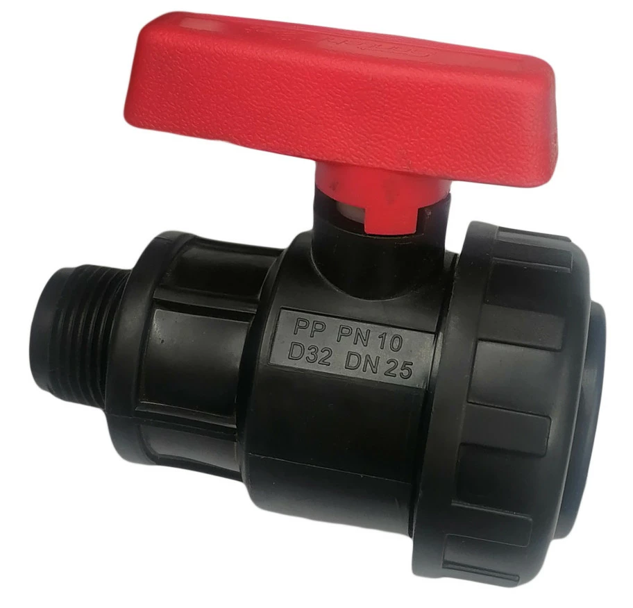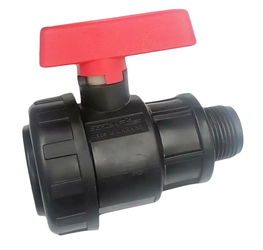 Кран кульовий пластиковий, тип з'єднання внутрішнє-зовнішнє різьблення. В основі даного пристрою лежить замикаючий елемент - шар, за допомогою якого відбувається відкриття або закриття проходу робочого середовища. Кран виконаний із пластику, не іржавіє, не піддається грибковим нальотам, осіданню опадів, що дозволяє застосовувати його в ємностях для питної води. Кран зручний у монтажі, має легку вагу та довгий термін стабільної і надійної роботи. Рекомендується використовувати при температурі не більше 60º та тиску не вище 15 бар. В основному це системи холодного водопостачання, дачного поливу.