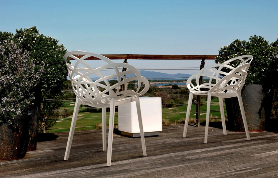 Ажурна крісло Flora нагадує обрисами ніжну квітку. Плавні