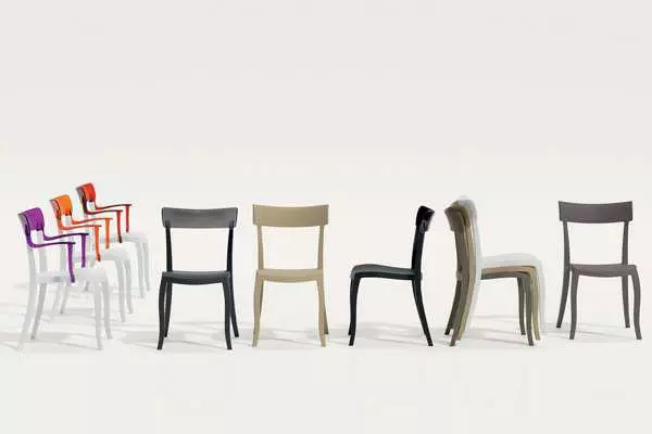 з поліпропілену, спинка і підлокітники зроблені з полікарбонату,