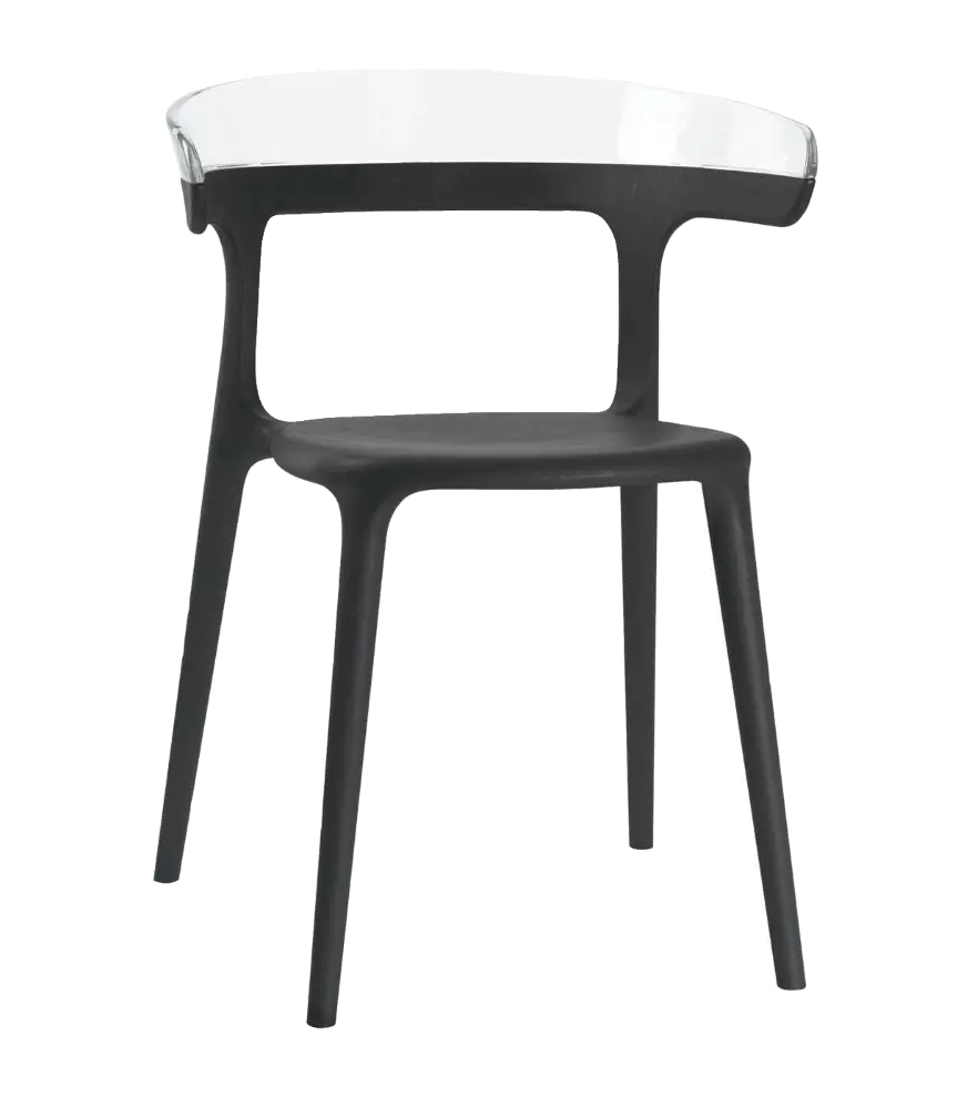Крісло Papatya Luna чорне сидіння, верх прозоро-чистий