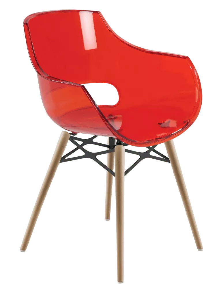Крісло Papatya Opal-Wox прозоро-червоне, рама натуральний бук