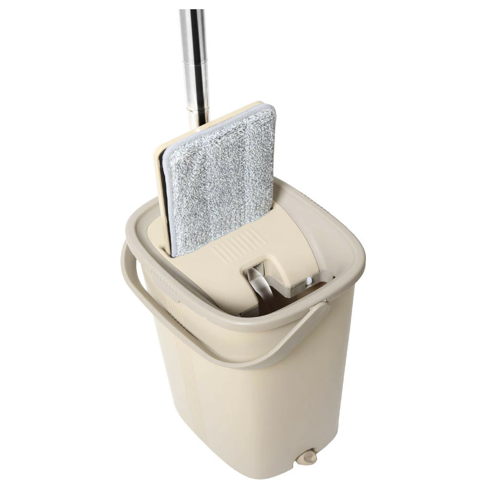 Набір для прибирання TABLET MOP CLASSIC 5л. Складається з 3-х компонентів: відра, швабри і мікрофібри. Висота відра 38см. Відро розділене на 2 половини, загальний об'єм 10л. Для того щоб намочити мікрофібру на швабрі і віджати її, потрібно заповнити водою тільки одну камеру відра. Перевага набора - його компактність. За допомогою відра зі спеціальною кришкою, ви з легкістю ополоснете ганчірку, не торкаючись до неї руками і не знімаючи з швабри. Конструкція кришки, має зубчасту стінку за допомогою якої видаляються налиплі на насадку волосся або інше дрібне сміття. Універсальна насадка з мікрофібри дуже зносостійка, добре вбирає вологу, не залишає розводів. Прати її можна в пральній машині при температурі до 50 градусів, так часто, наскільки в цьому є необхідність. Ручка швабри з регульованою довжиною складається з декількох частин, які легко зібрати і розібрати. Для зручності зливу води з відра, рекомендується зняти кришку, акуратно піднімаючи бічні засувки. Добре підходить для ламінату, лінолеуму, плитки, скла та інших поверхонь.