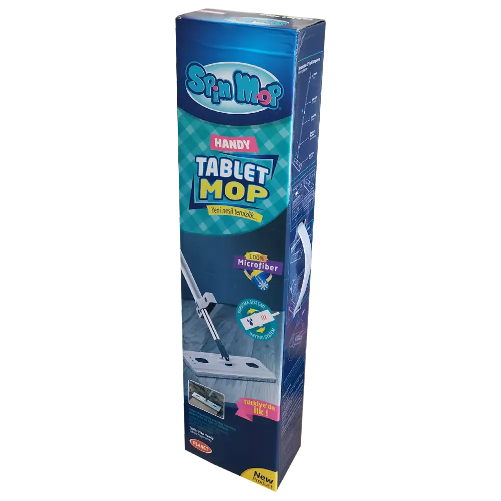 Набір для прибирання «Planet» TABLET MOP HANDY- модернізована модель швабри. Передова технологія дозволяє віджимати швабру не торкаючись ганчірки руками. Плоска швабра дозволяє прибрати дуже забруднені місця за допомогою 100% мікрофібри. Поворотна головка швабри, дозволить прибирати бруд у важкодоступних місцях з висотою доступу до 5 см. В комплекті запасна насадка з мікрофібри і 10 серветок для сухого прибирання. Ви можете використовувати будь-яке відро для даної швабри. Верхня частина швабри покрита приємним матеріалом для рук. Насадки з мікрофібри можна прати в пральній машині при температурі до 50 градусів. Відро в набір не входить.