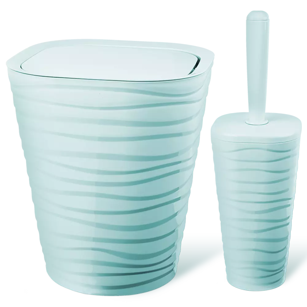 Лінійка наборів для ванної кімнати WELLE має сучасний дизайн в поєднанні з функціональністю і практичністю. Особливістю даної моделі є хвиляста структура виробу. Палітра пастельних кольорів дає можливість підібрати набір під будь-який інтер'єр. Набір складається з двох предметів, які мають квадратну форму із закругленими кутами: корзина для сміття з поворотною кришкою і щітка для туалету. У йоржика використана ліва різьба (при з'єднанні йоржа з ручкою, потрібно обертати йорж проти годинникової стрілки). Товар виготовлений з якісного пластика.