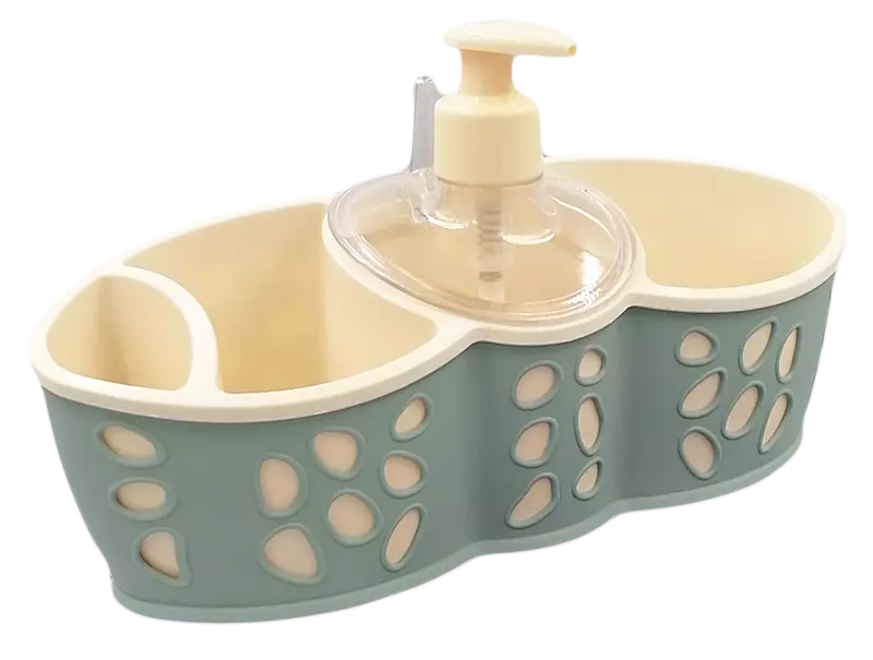 Лінійка товарів для ванної кімнати STONE має сучасний дизайн в поєднанні з функціональністю і практичністю. Особливістю даної моделі є рельєфний малюнок з переплетенням двох виробів. В органайзері є три основних відділення і одне додаткове, одне з відділень з дозатором для рідкого мила. Товар виготовлений з якісного пластика.