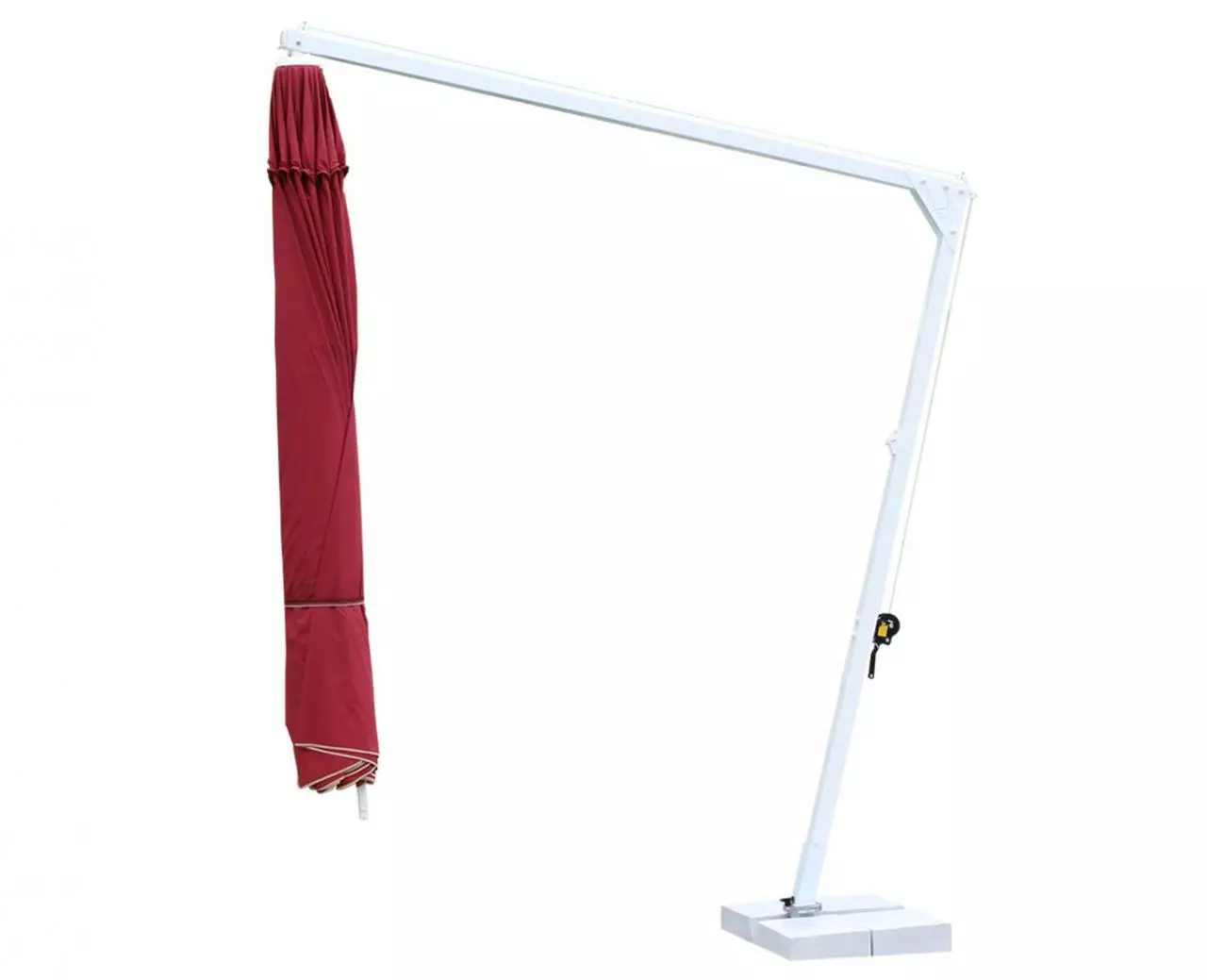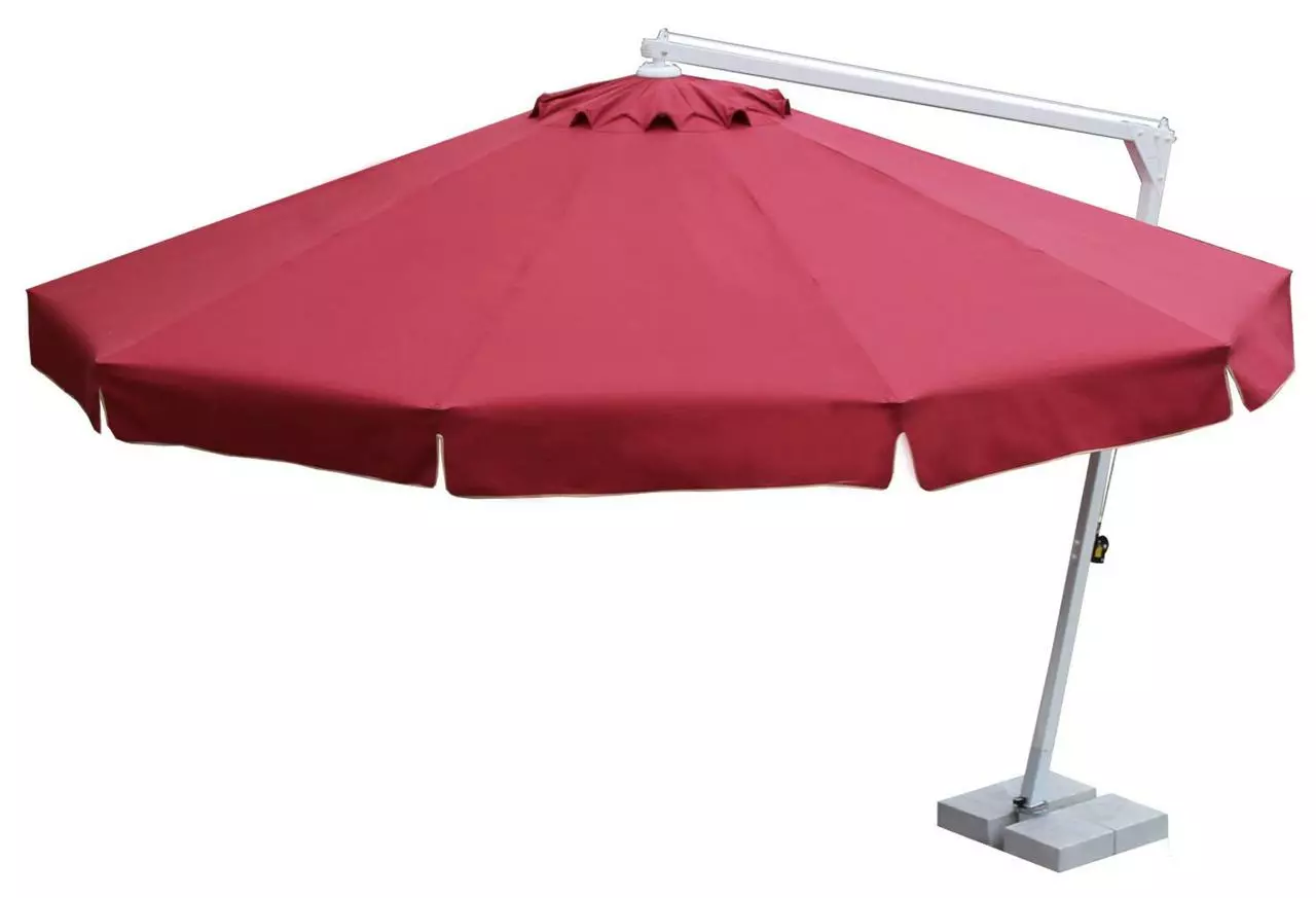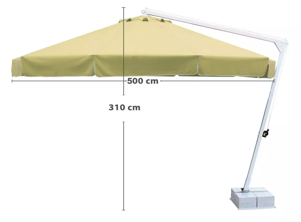 Професійна парасоля захистить від яскравих сонячних променів і створить приємну затінену атмосферу в приватних садах, зони біля басейну, відкритих літніх майданчиках кафе, барів і ресторанів. Виконання купола можливо з трьох тканин: бежевий поліестер, олефін і акрил. Варіанти забарвлення представлені в кольоровій палітрі для тканини олефін і акрил. Покриття опори і спиць можна вибрати з представленої палітри, в чорному кольорі + 10% до вартості виробу. Ціна на сайті вказана за тканину бежевий поліестер, вартість купола з тканини акрил і олефін уточнюйте у менеджера.