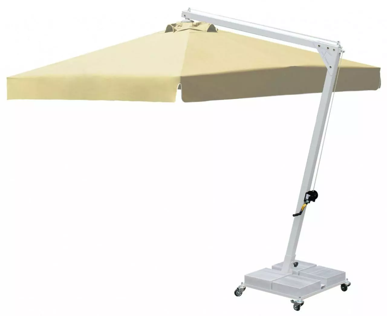 Професійна парасоля захистить від яскравих сонячних променів і створить приємну затінену атмосферу в приватних садах, зони біля басейну, відкритих літніх майданчиках кафе, барів і ресторанів. Виконання купола можливо з трьох тканин: бежевий поліестер, олефін і акрил. Варіанти забарвлення представлені в кольоровій палітрі для тканини олефін і акрил. Покриття опори і спиць можна вибрати з представленої палітри, в чорному кольорі + 10% до вартості виробу. Ціна на сайті вказана за тканину бежевий поліестер, вартість купола з тканини акрил і олефін уточнюйте у менеджера.